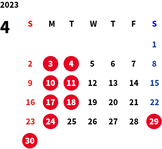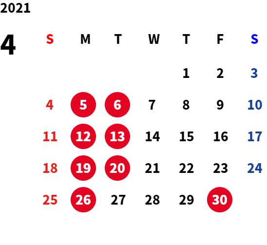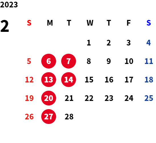■月曜日定休日を基本としておりますが、不規則なお休みを頂く場合もございます。 定休日の詳細は営業日カレンダーをご参照ください。