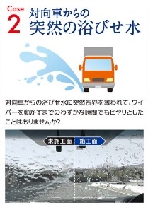 ②対向車からの浴びせ水を一瞬にして