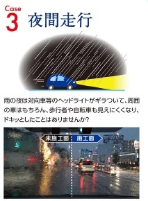こちらのQMIスーパーファインビューは高い撥水効果によりゲリラ豪雨や対向車