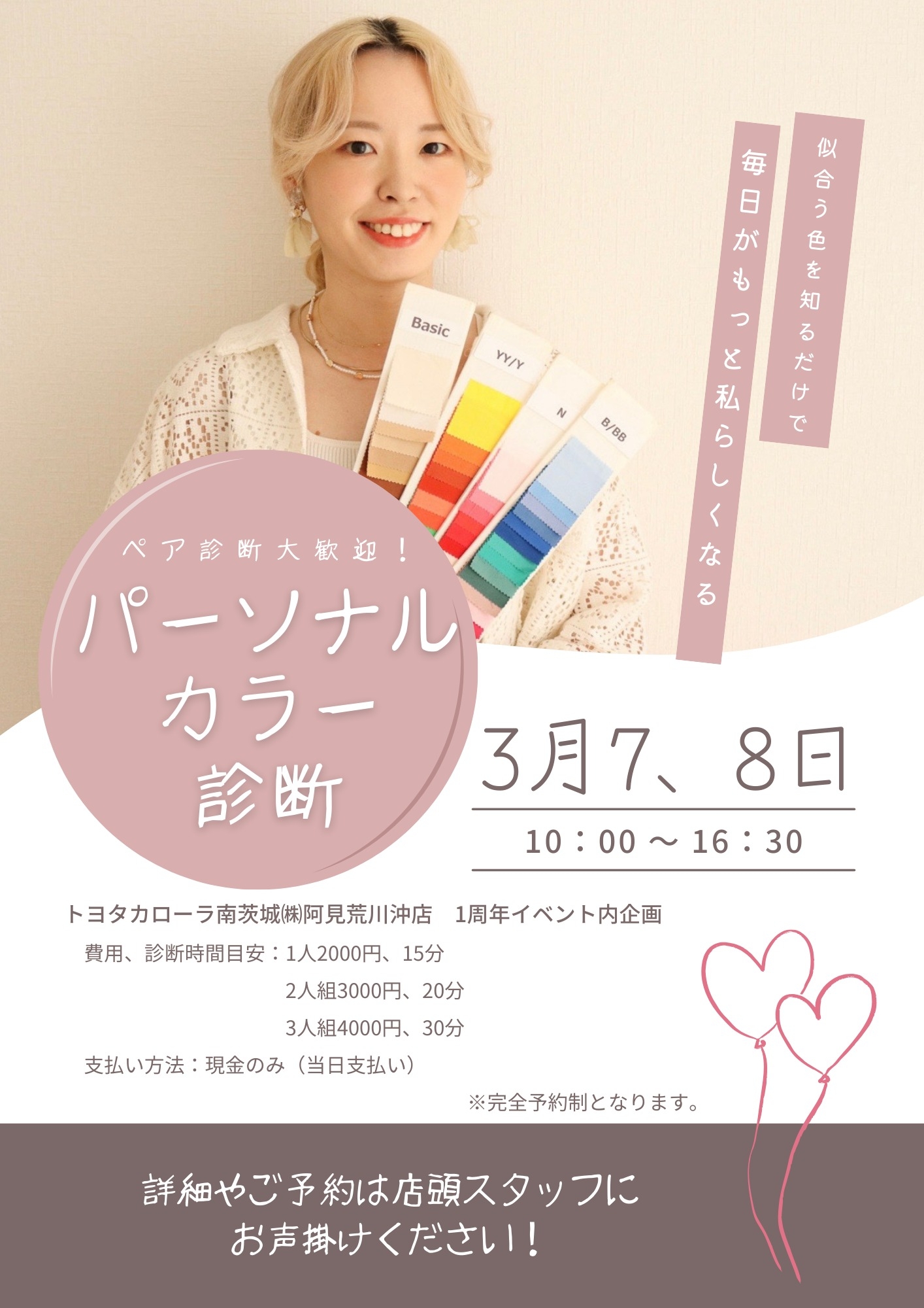 前回のブログで紹介した【パーソナルカラー診断】まだまだ予約受け付けていますのでお電話や店頭でお待ちしております🙇