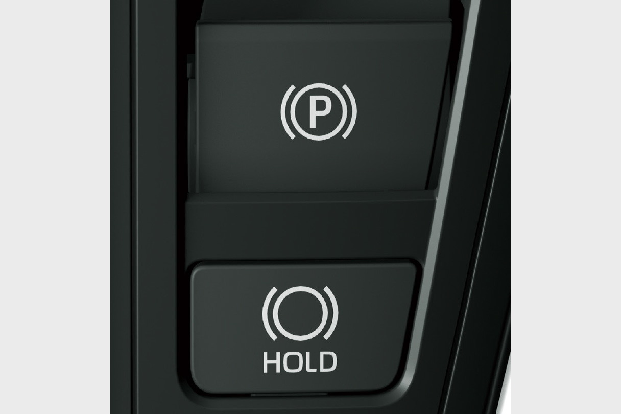 シフトレバーを「P」ポジションに入れると自動で作動し、ブレーキを踏みながら「D」ポジションなど「P」ポジション以外にシフトすると解除されるオート機能付*1です。