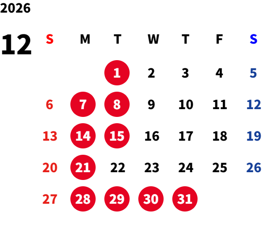 ■月曜日定休日を基本としておりますが、不規則なお休みを頂く場合もございます。 定休日の詳細は営業日カレンダーをご参照ください。