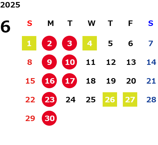 ■月曜日定休日を基本としておりますが、不規則なお休みを頂く場合もございます。 定休日の詳細は営業日カレンダーをご参照ください。