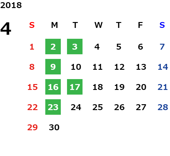 ■月曜日定休日を基本としておりますが、不規則なお休みを頂く場合もございます。 定休日の詳細は営業日カレンダーをご参照ください。