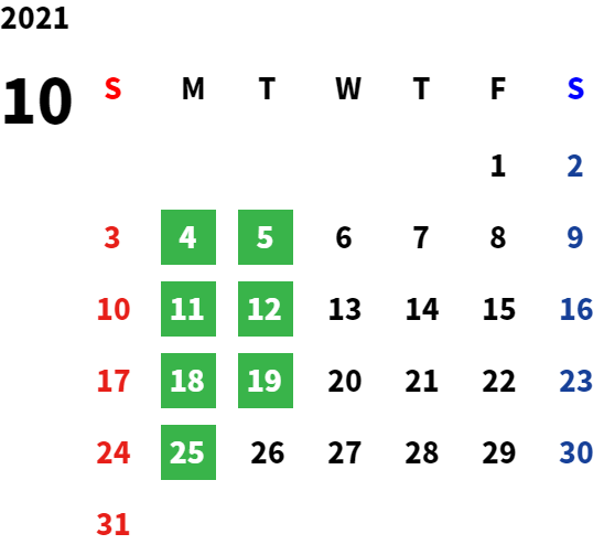 営業日カレンダー
