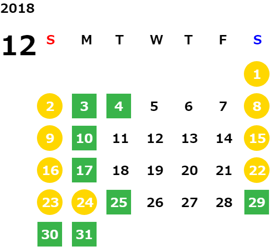 ■月曜日定休日を基本としておりますが、不規則なお休みを頂く場合もございます。 定休日の詳細は営業日カレンダーをご参照ください。